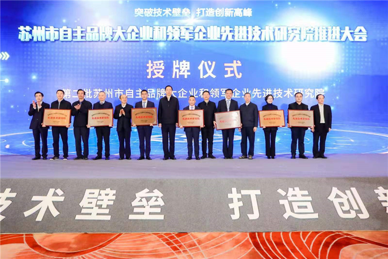 2019年12月21日,徐元生董事長率隊參加了由蘇州市委、市政府組織召開的第二批蘇州自主品牌大企業(yè)和領(lǐng)軍企業(yè)先進技術(shù)研究院推進大會,并榮獲市政府授牌蘇州市大企業(yè)和領(lǐng)軍企業(yè)先進技術(shù)研究院。