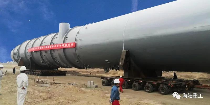 據(jù)悉,此次吊裝完工的超限設(shè)備-急冷水塔,內(nèi)徑7200mm,長61.7m,重441噸,為總包方中國寰球工程有限公司北京分公司首臺安裝完工的超限設(shè)備。