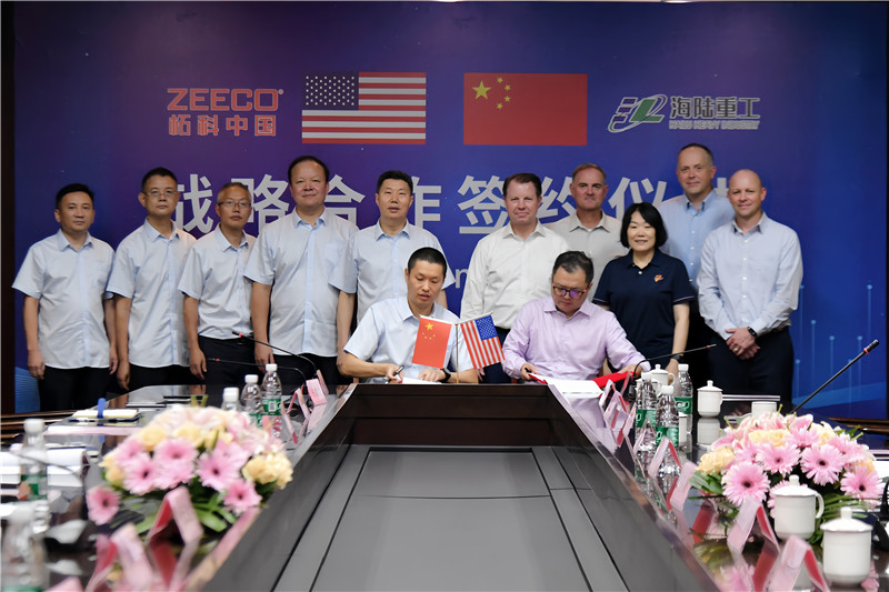 8月23日,蘇州海陸重工股份有限公司與柘科(中國)工程設(shè)備有限公司簽署戰(zhàn)略合作協(xié)議。美國ZEECO全球總裁及首席執(zhí)行官Darton Zink先生率領(lǐng)高級副總裁Terry W. Dark、制造總監(jiān)Darrell Thomas、市場和業(yè)務(wù)總監(jiān)Brent Williamson、東南亞分公司總經(jīng)理Anand Gokhale、柘科(中國)總經(jīng)理馬原及管理團隊,海陸重工董事長徐元生、總經(jīng)理徐冉等公司主要領(lǐng)導(dǎo)共同出席戰(zhàn)略合作簽約儀式。